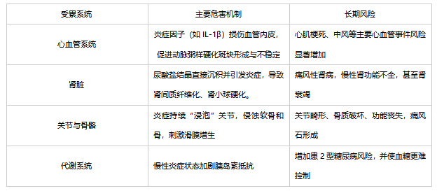 第一重损害:疾病本身。 血液中过高的尿酸会形成结晶,直接沉积在肾小管和肾间质,引发“痛风性肾病”,导致肾功能逐渐下降。